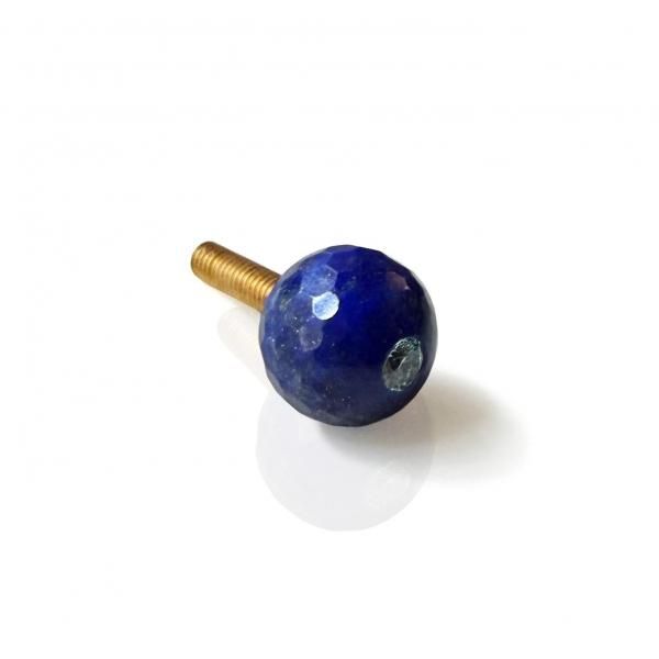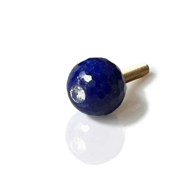 紺青色にパイライトによる金色の斑点と母石のカルサイトの白色部分がみられます。宝石としては一様な群青色のものが珍重されるが、パイライトの斑点が点在しているものはさらに高く評価されます。